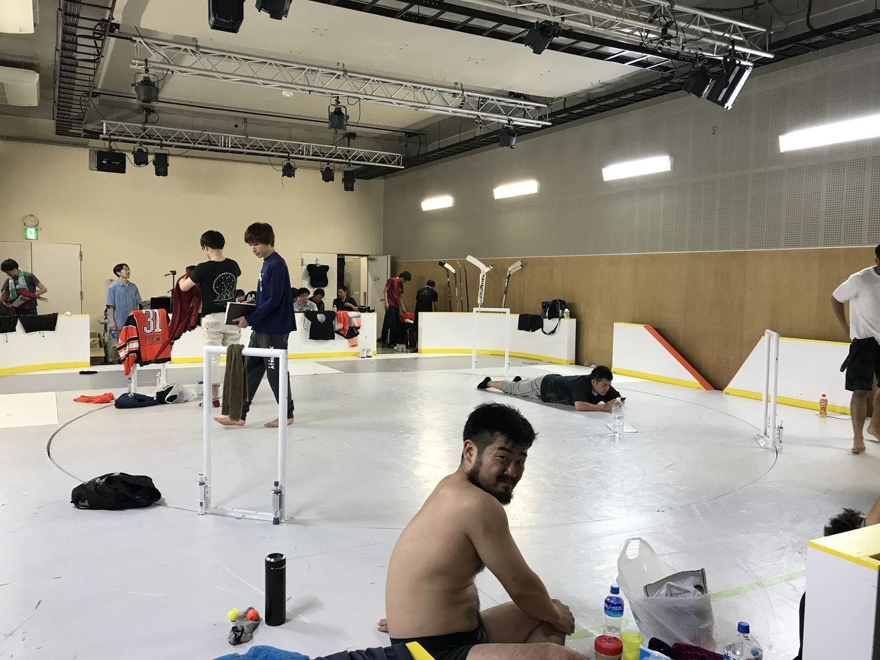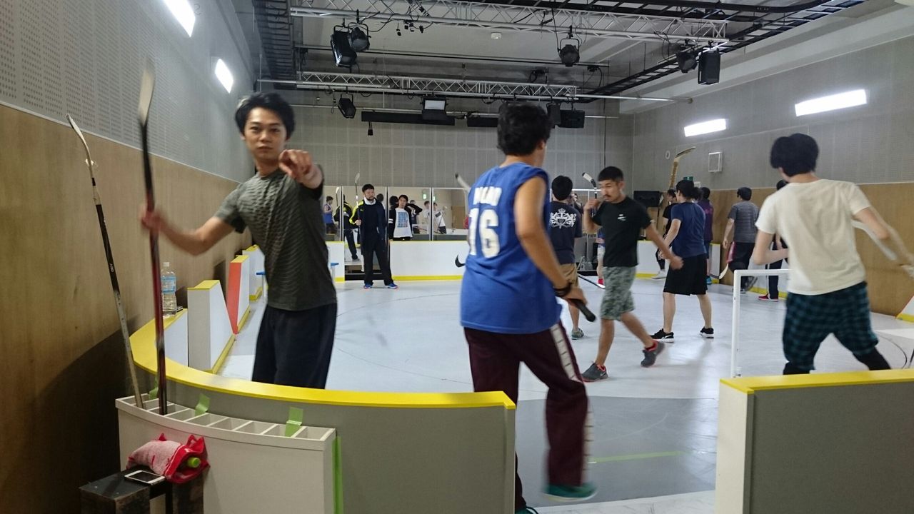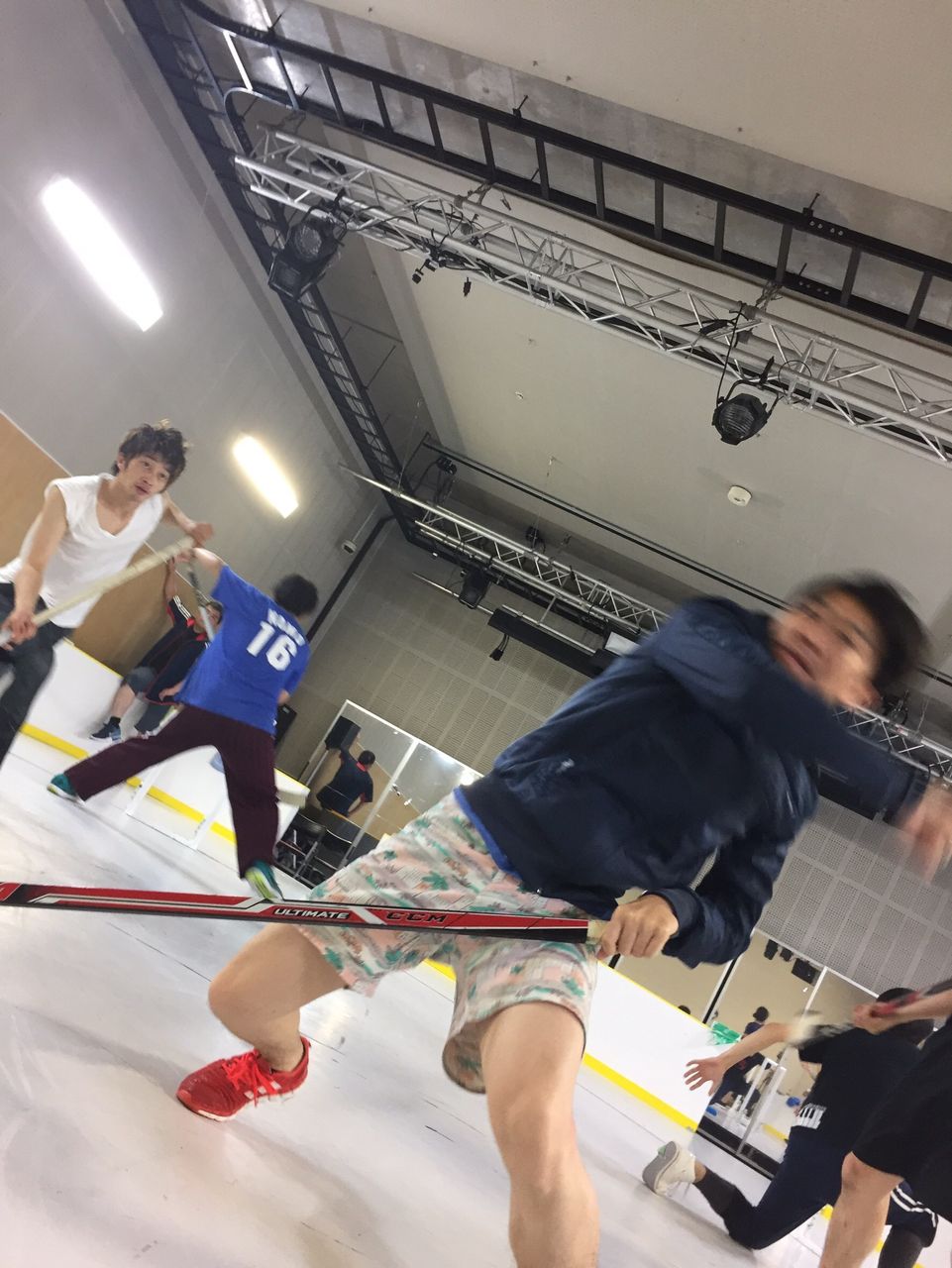 演出家のろばさん、演出助手大野さんの下、一致団結してホッケーに明け暮れる我々ペナキリ座組一同。