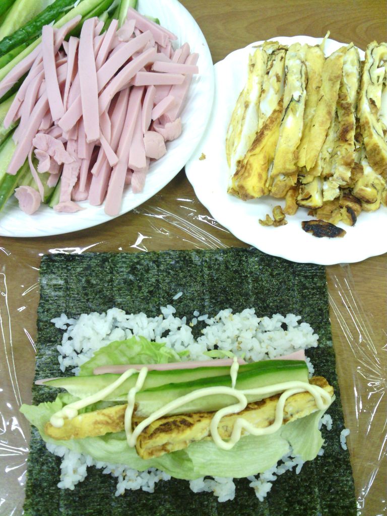 取りあえず、東北東に向かって、恵方巻きを食べる