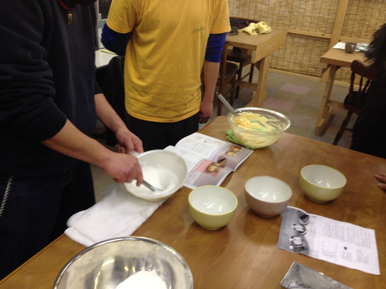 サポステOBで、お菓子作りが得意なTくんに講師になってもらい、皆で苺のパウンドケーキを作りました。