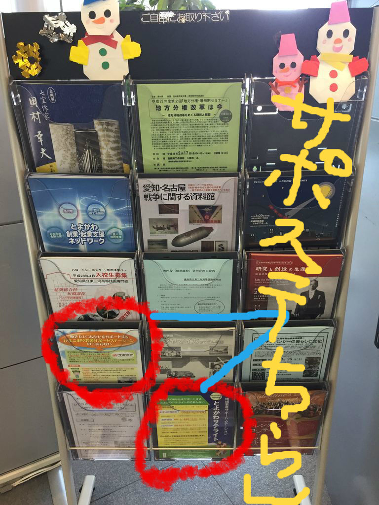 中央図書館さまありがとうございます。サポステのちらし発見しました