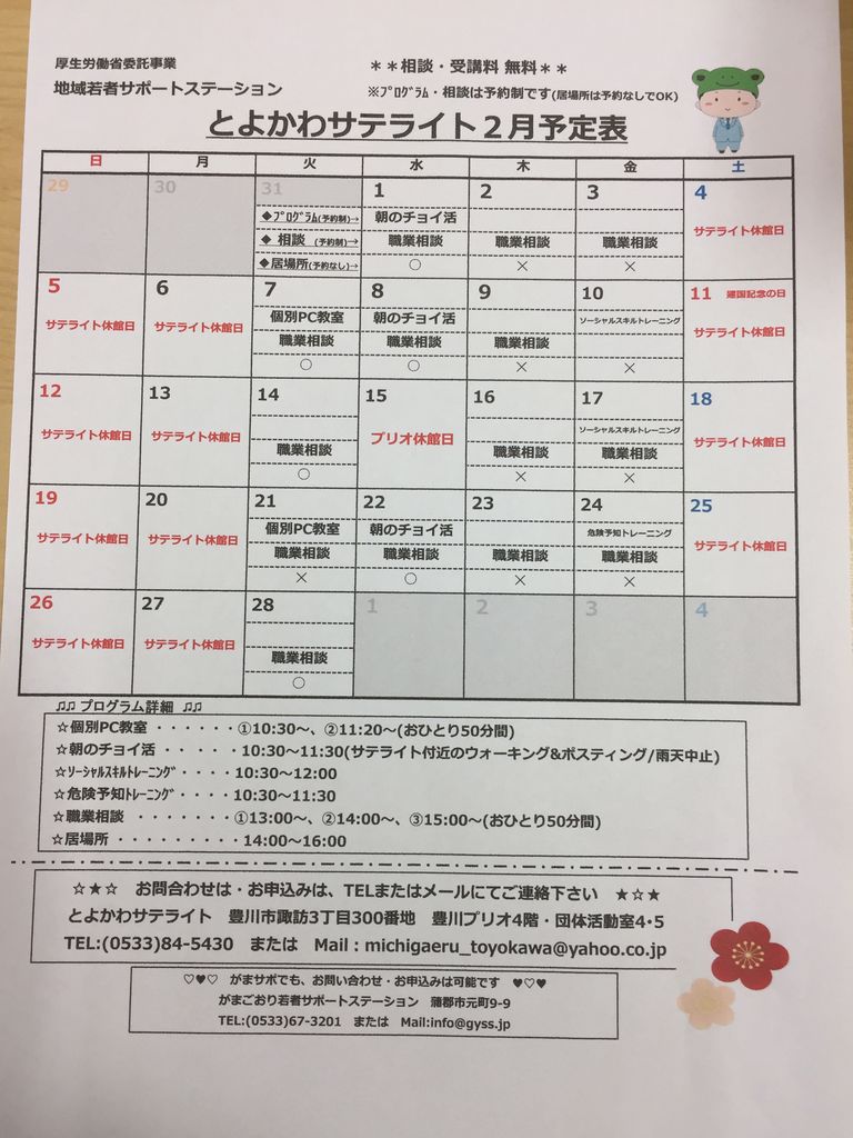 とよかわサテライト、2月からプログラムが始まるんだって・・・