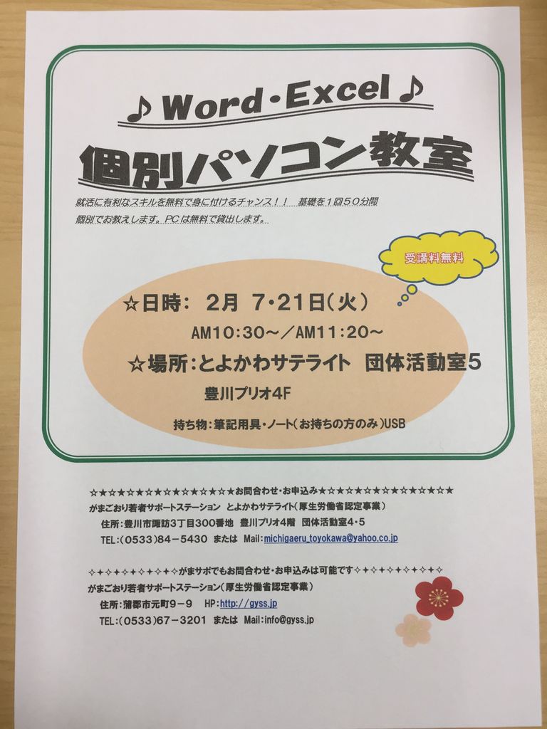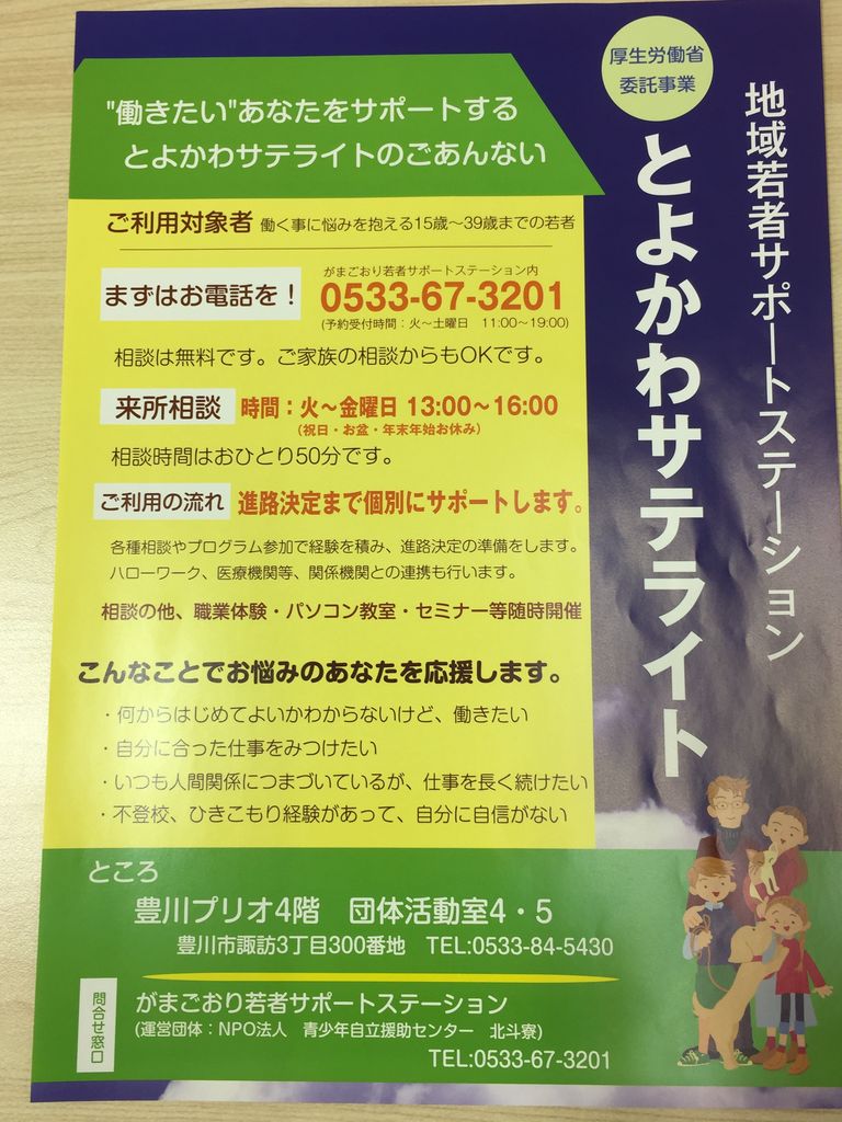 少し焦った事もありましたが少しでも多くの方々に『がまごおり若者サポートステーション・とよかわサテライト』を知っていただけたら嬉しいです