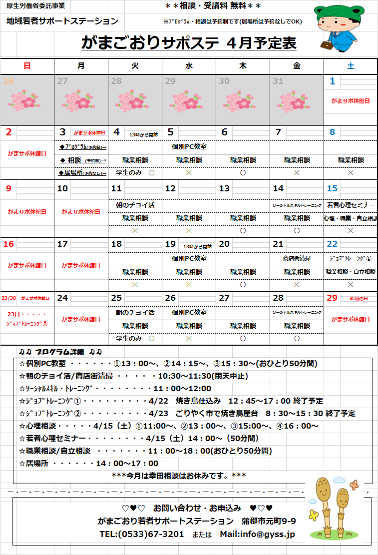 ¤µ¤Æ¡¢4·î¤Î¥¹¥±¥¸¥å¡¼¥ë¤¬¤Ç¤¤Þ¤·¤¿¡£