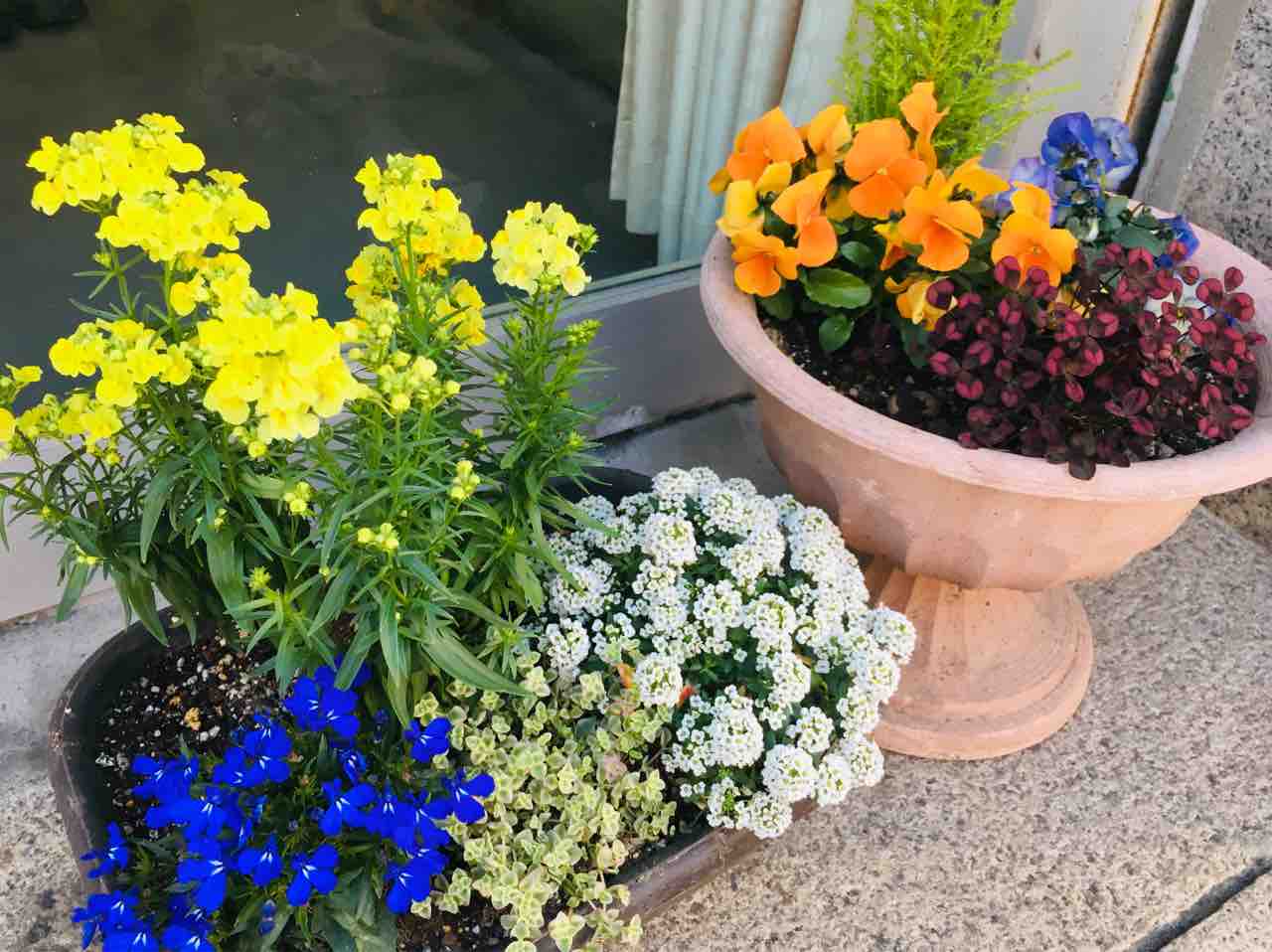 *・゜゚・*:.。..。.:*・゜利用者の方と一緒に作った寄せ植えがただいま満開です♪*・゜゚・*:.。..。.:*・゜