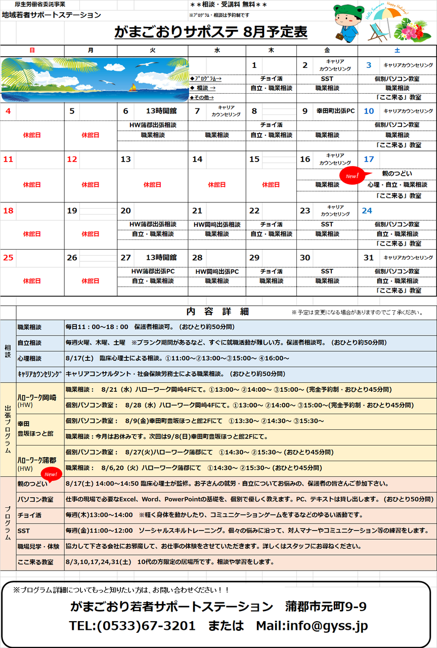¤µ¤Æ¡¢8·î¤Î¤¬¤Þ¤´¤ª¤ê¥µ¥Ý¥¹¥Æ¡¢¤È¤è¤«¤ï¥µ¥Æ¥é¥¤¥È¤Î¥¹¥±¥¸¥å¡¼¥ë¤¬¤Ç¤¤Þ¤·¤¿¤Î¤Ç¤´³Îǧ¤¯¤À¤µ¤¤¡£