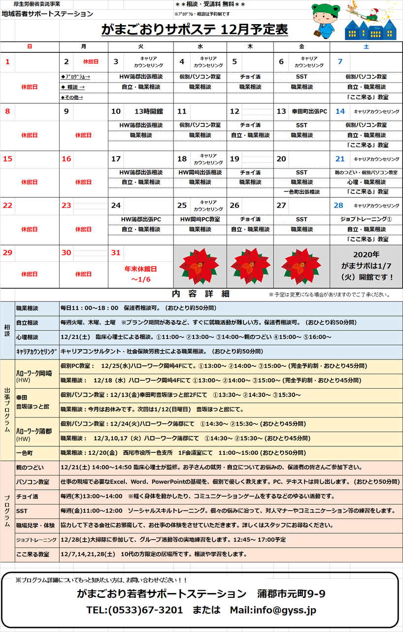 ¤µ¤Æ¡¢ÎáϸµÇ¯12·î¤Î¤¬¤Þ¤´¤ª¤ê¥µ¥Ý¥¹¥Æ¡¢¤È¤è¤«¤ï¥µ¥Æ¥é¥¤¥È¤Î¥¹¥±¥¸¥å¡¼¥ë¤¬¤Ç¤¤Þ¤·¤¿¤Î¤Ç¤´³Îǧ¤¯¤À¤µ¤¤