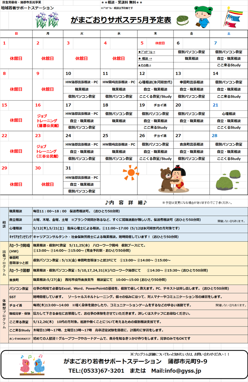 さて、令和4年5月のがまごおりサポステ、とよかわサテライトの