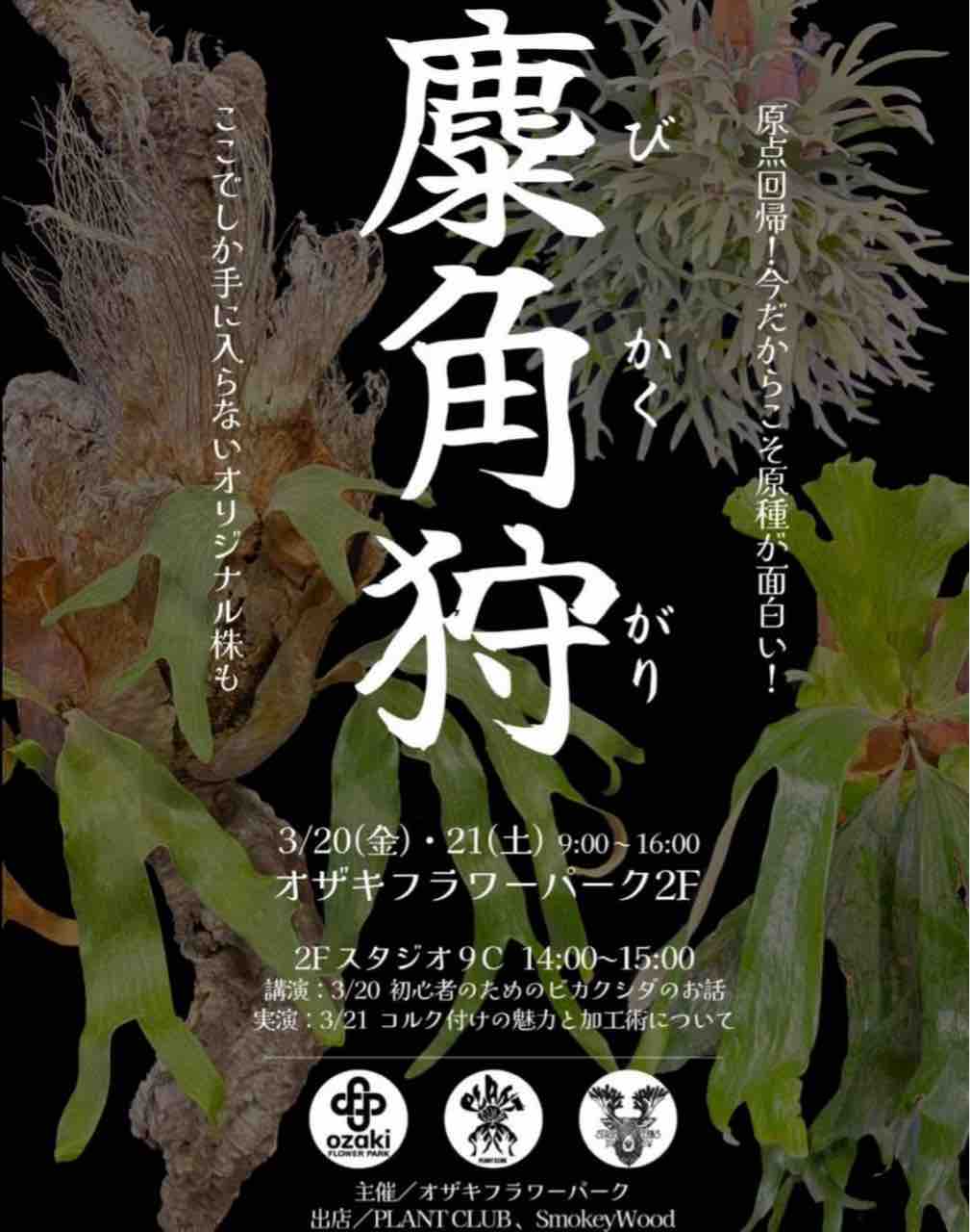 3月20日(金・祝)・21日(土)にオザキフラワーパーク様2Fにて開催されるビカクシダ特別イベント【麋角狩(びかくがり)】にPLANT CLUBも出展いたします!