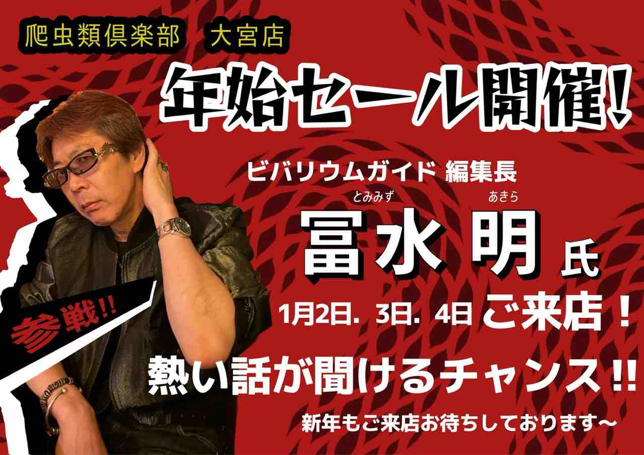 2026年も来てくれます!今年の年始セールでも冨さんの熱いトークが大爆発で大盛況なセールでした◎初めてご対面するとちょいと怖い印象があるかもですが(笑)、丁寧で面白い話を直接聞けるチャンス!個人的には生体の保定の仕方なども間近で見れいつも参考にさせていただいています…!