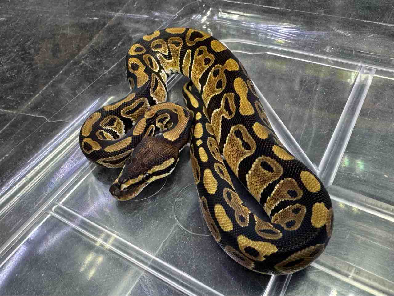 初めて見る方は目を疑う品種ではないでしょうか。まさに塗り絵途中のボールパイソン!模様の入り方も個体それぞれで愛着が湧きます。