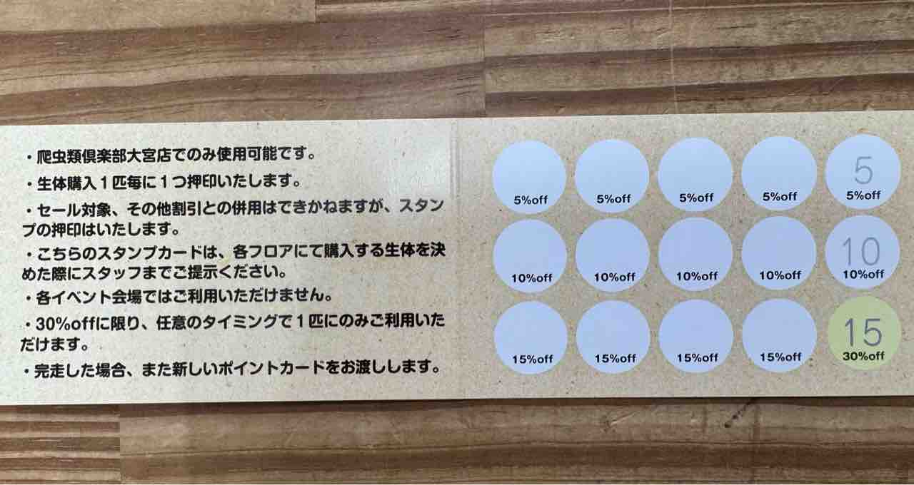 生体を購入いただきスタンプを貯めていくと、最終的に好きな生体を30%OFFに出来ちゃいます!?その途中でも割引率は上がっていくので、もらっておいて損は無し!!