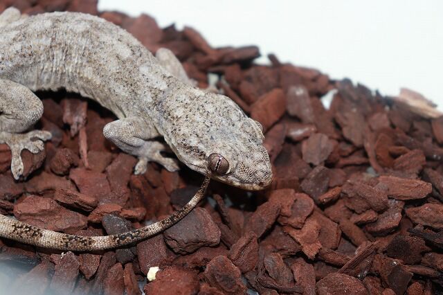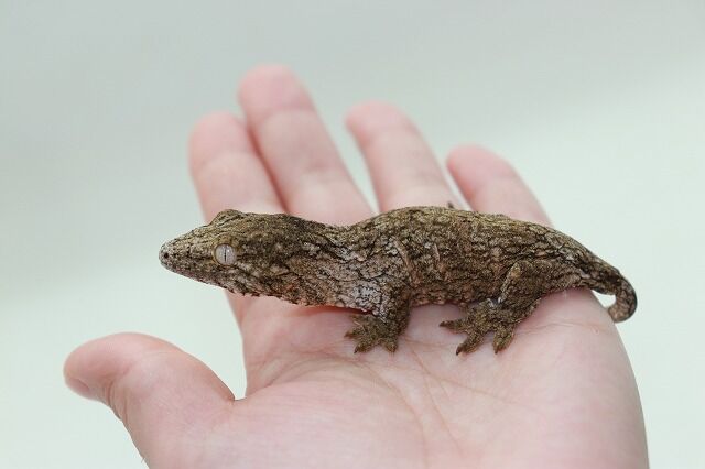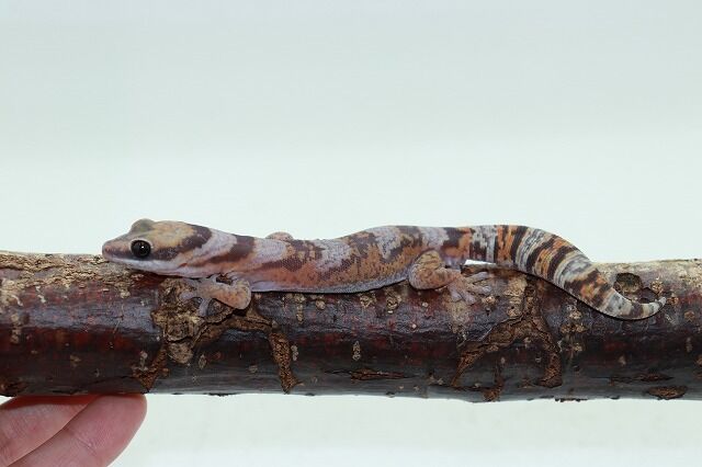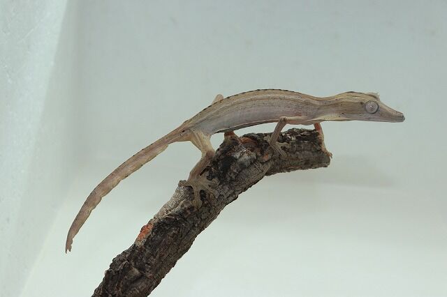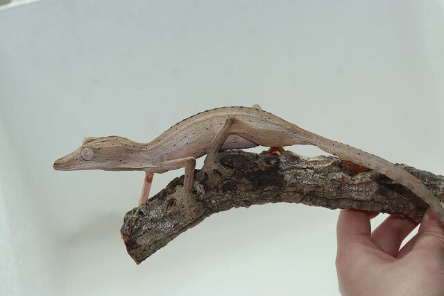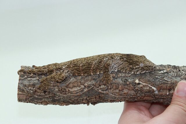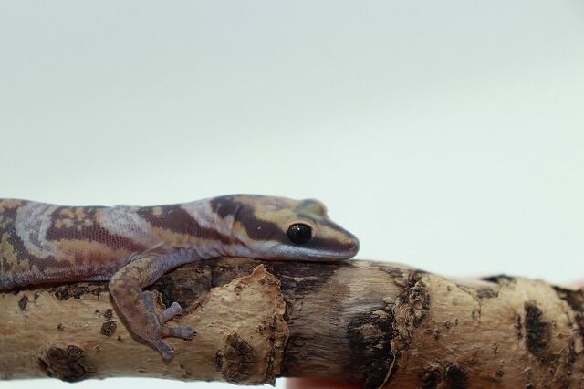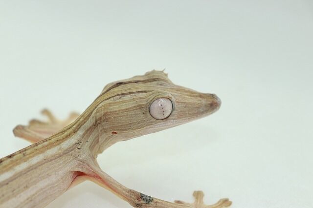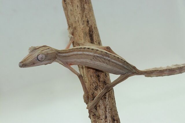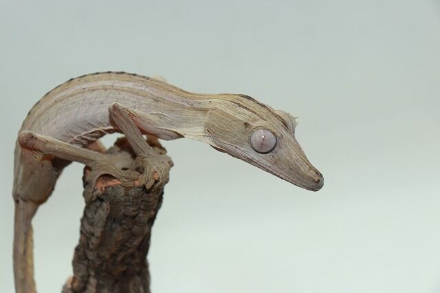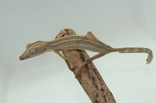 ヘラオヤモリは基本、枯葉や苔、樹皮に擬態する種類が多い中、スジは竹に擬態するという他のヘラオには無い特徴を持っています。