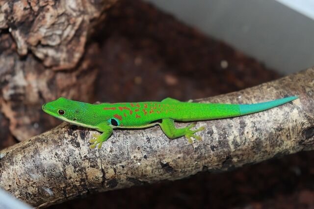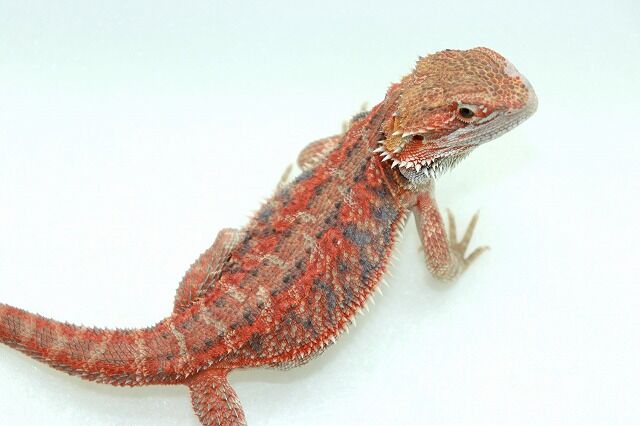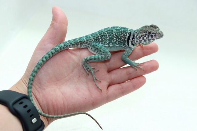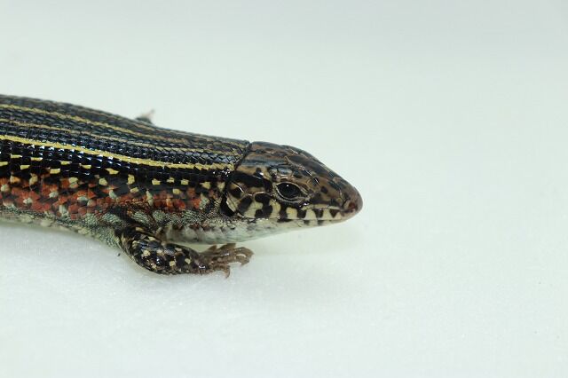 赤い頭部や、背中に走る水色から緑のグラデーションライン、背中に散りばめられた虫食い模様が本当に美しい種類です!