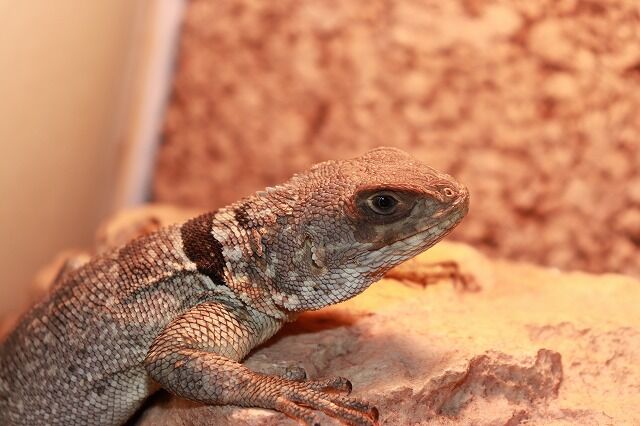 ミツメイグアナの名の通り、頭部にある頭頂眼(光を感知する器官)が大きい為、三つ目に見える事からこの名前が付いたそうです!