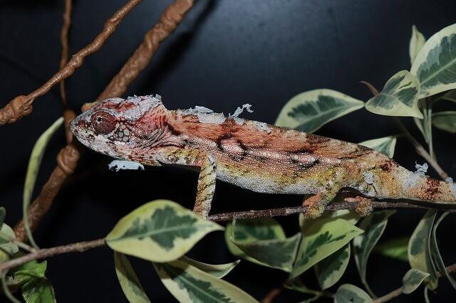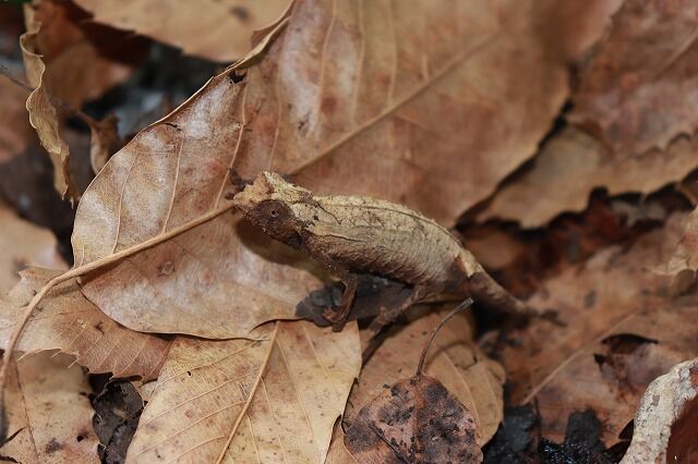 最大でも指先サイズとカメレオンの中でも小型なグループに属しており、木の上で生活するタイプではなく地上に落ちている枯葉等に擬態しながら生活するタイプです。