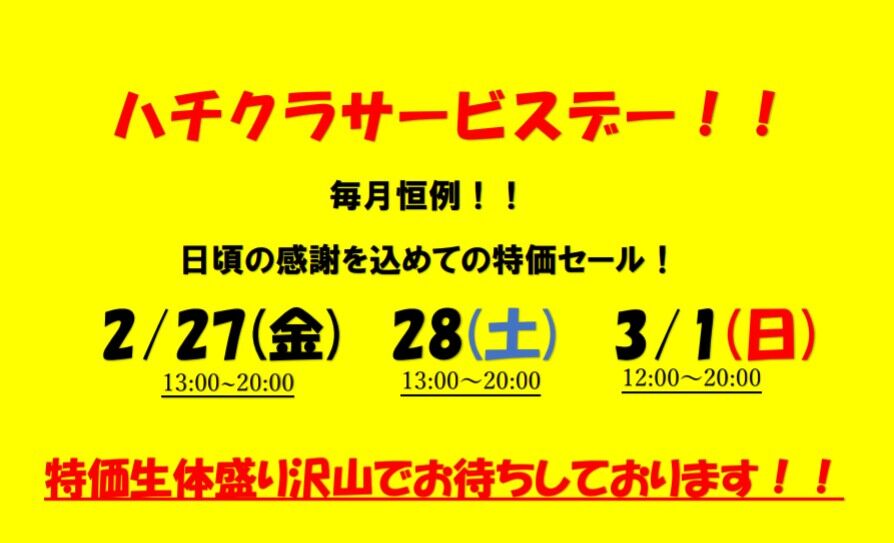 特価対象生体のケースにサービスデー特価POPが貼ってありますのでぜひチェックしてください!!