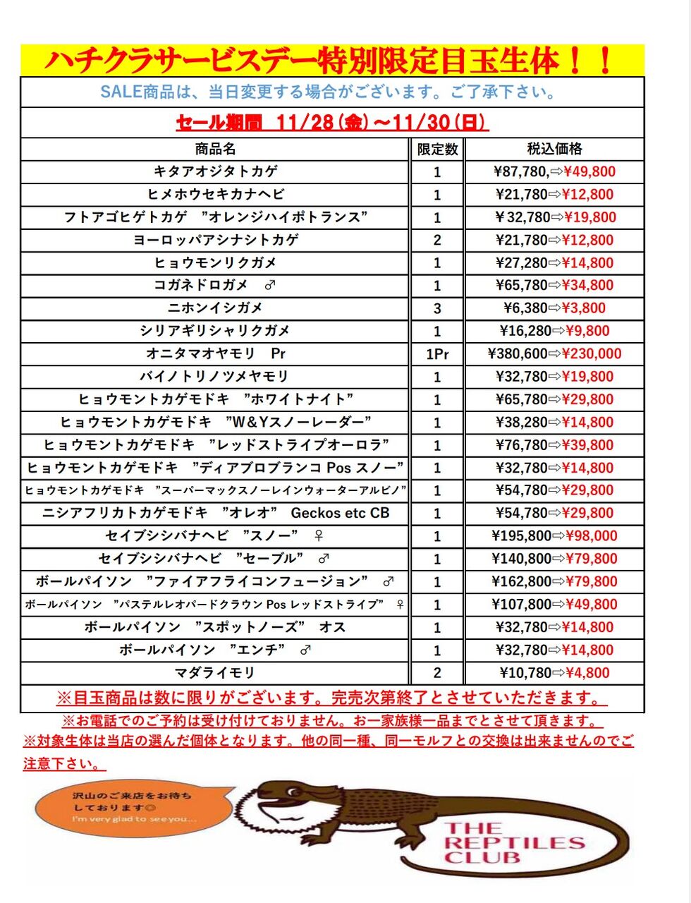 爬虫類即売会開催です!!