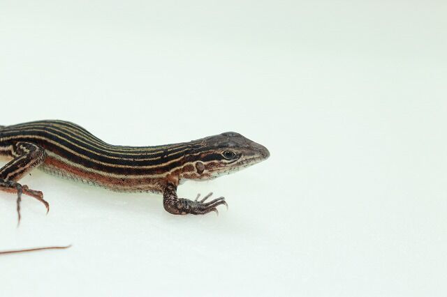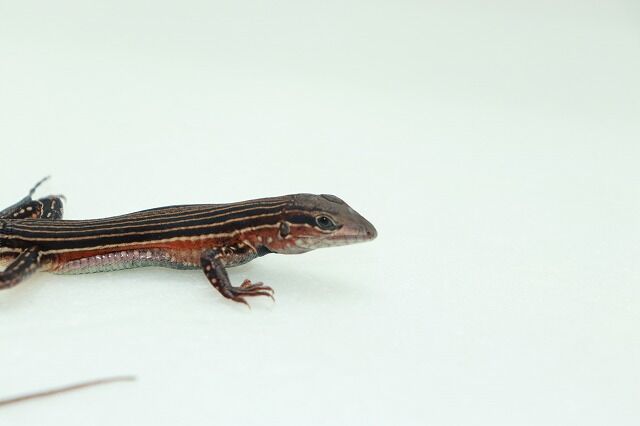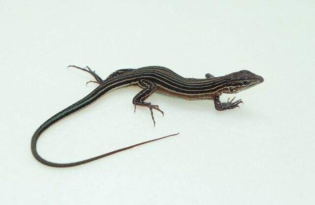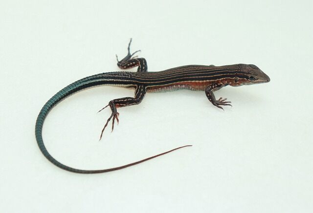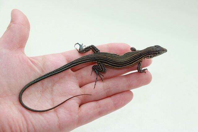 すばしっこいのでハンドリングには不向きですが、サイドのオレンジや青みがかった尻尾、ナナスジランナーの名の通り細く何本も入った筋模様が綺麗なトカゲで、観賞用には持って来いのトカゲかと思います!!