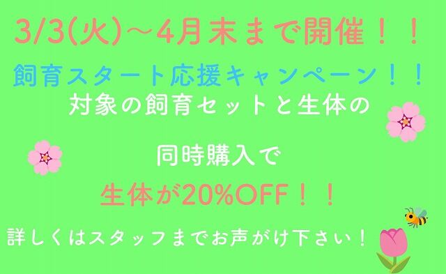 対象の飼育セットと生体の同時購入で生体20%OFF!!