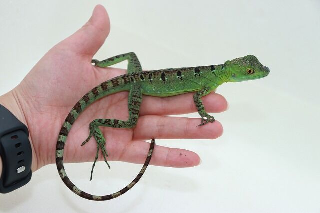 水面を素早く走れることで有名な大型のトカゲで、オスは成長するにつれ、頭部~尻尾にかけて立派な帆状のクレストが発達してきます。
