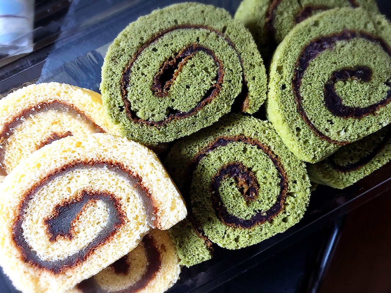 緑は見ての通りの抹茶味の生地に餡子が巻かれていました♡