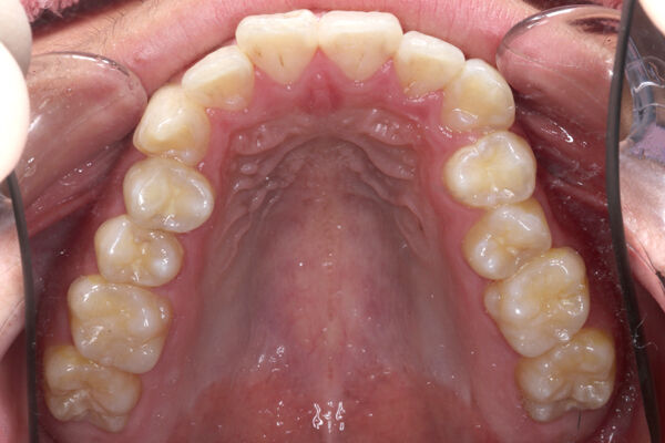 患者さんの右側(画像だと左側)よりもへこんでいるのがわかります。