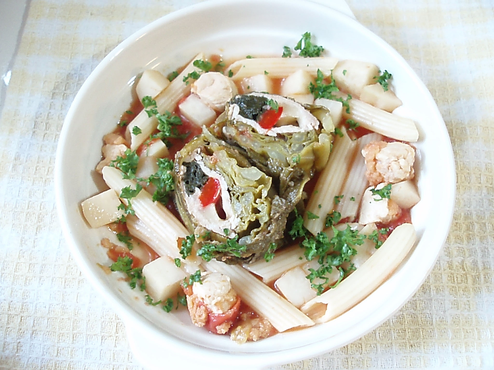 巻いてあるキャベツをビロビロ〜ンって、お皿から引きずり出して食べてました。