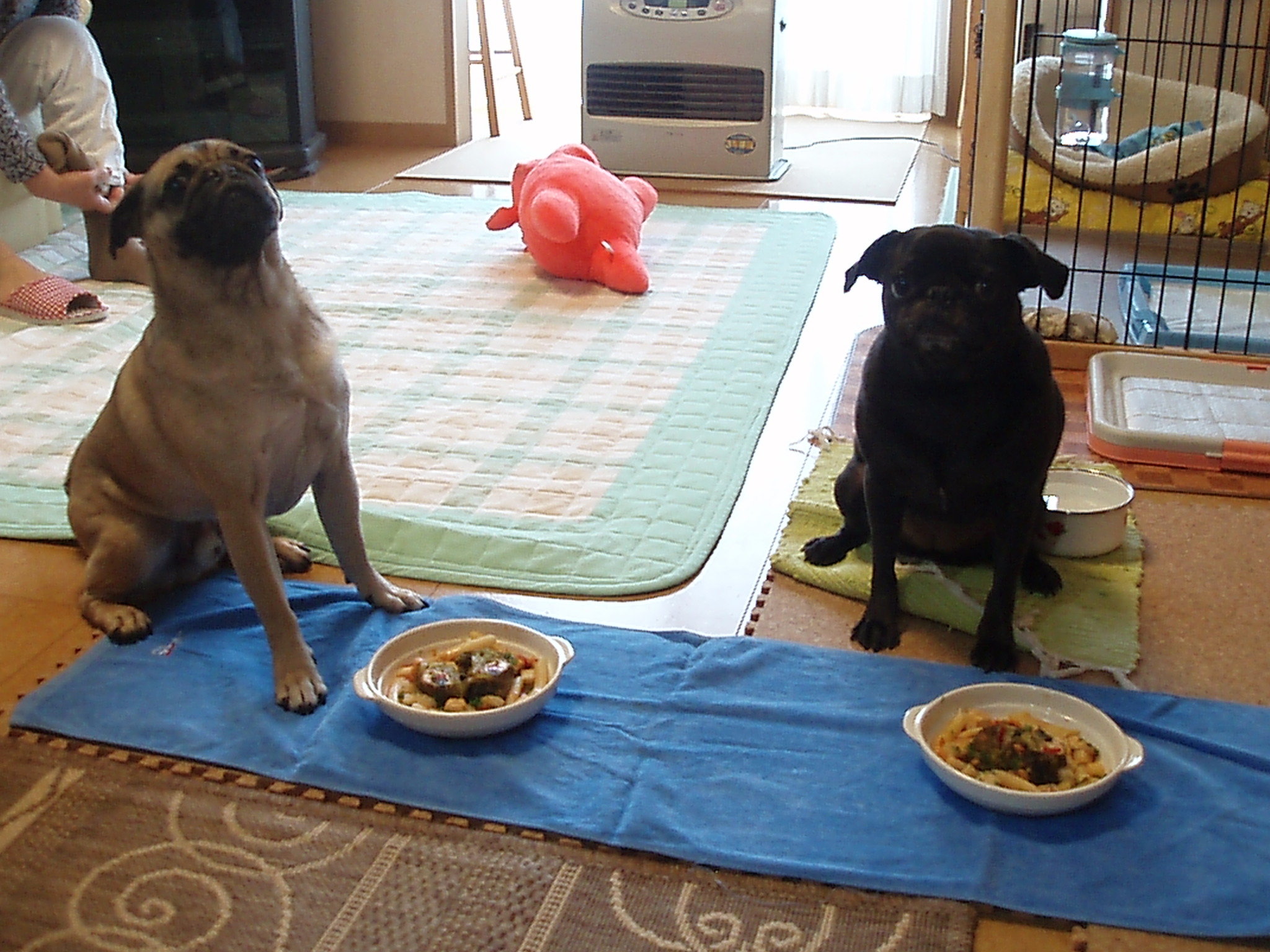 『OK』で一斉に食べ始めた2匹ですが・・・