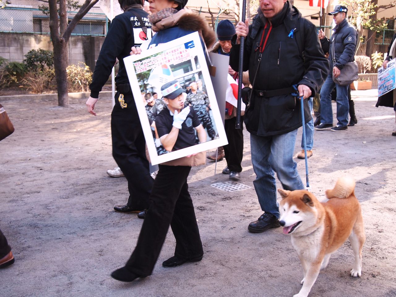 その後、渋谷のハチ公前に場所を移し、街頭宣伝活動を行ないました。竹島問題をネタにしたコントが披露されると、足を止めて見る人が増えました。休日の渋谷駅で行なう街宣にも私は何度か行きましたが、平日のほうが聴衆の反応が良いように感じました。皆さんかなり熱心に聞いていたし、チラシを受け取ってくれる人も多かったようです。