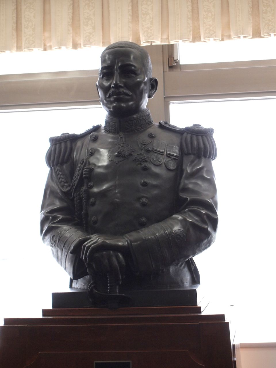 海上自衛隊幹部候補生学校のフロアに秋山真之(さねゆき)の胸像がありました。これはイタリア人のリナルディという彫刻家が作成したものだそうです。秋山真之が亡くなったあと、秋山を慕う学生たちがお金を出し合って作ることになったそうですが写真が1枚しかなく、秋山本人に会ったことのないリナルディはとても苦労したそうです。でも出来あがった彫像は見事なものでした。