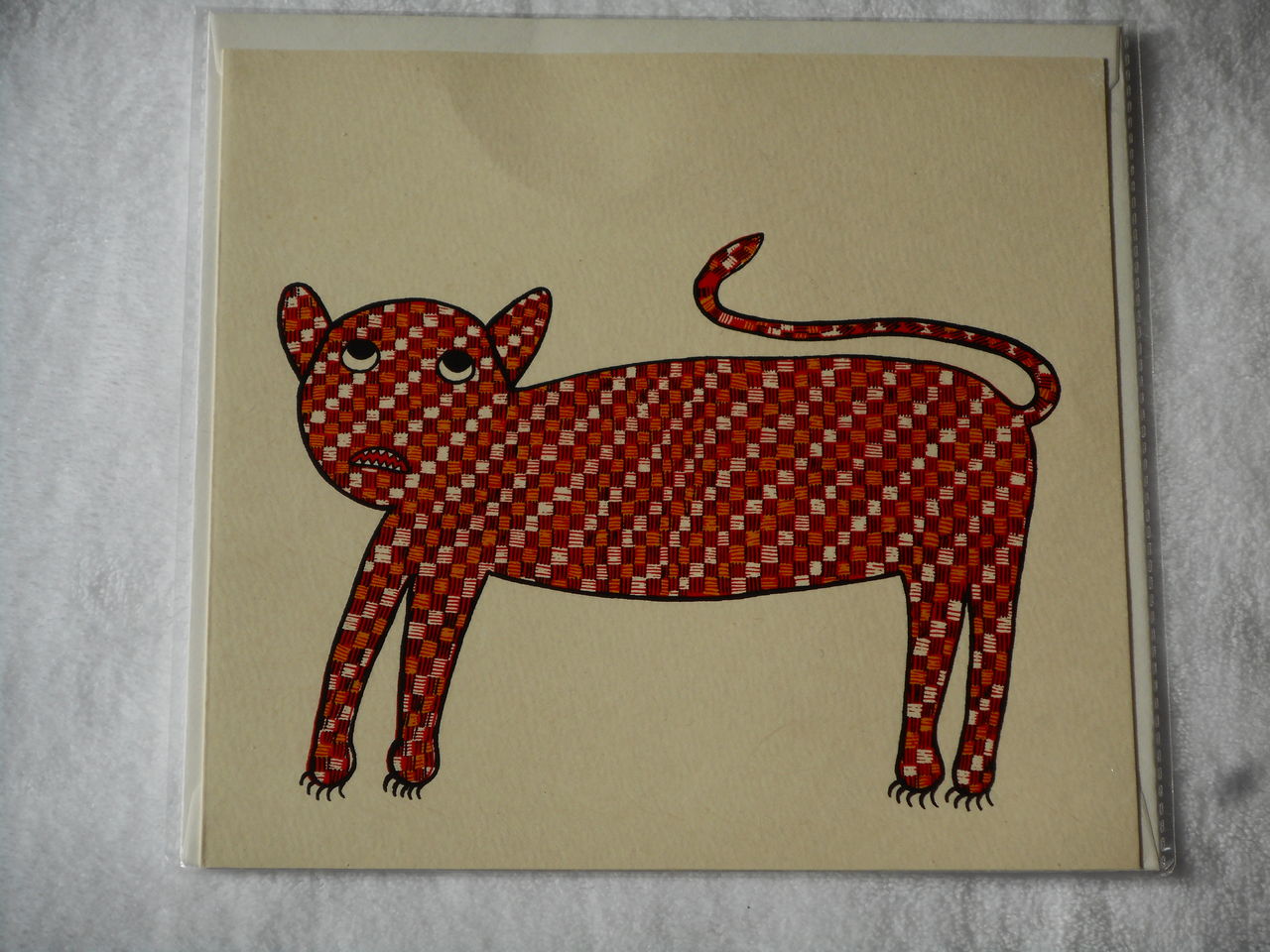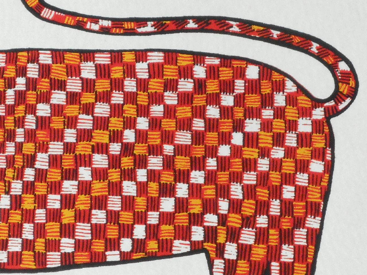 猫をデザインした絵です。しっぽがヘビみたいに見えます。他の作品にも、このようなくねくねした曲線が多く見られるのですが、蛇の動き方に触発されて思い浮かんだ形なのかなという気がします。