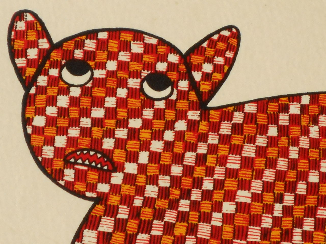 「ゴンド芸術は知的かつ詩的で、複雑な横線と見事な構図を特徴としている」と解説文にありました。