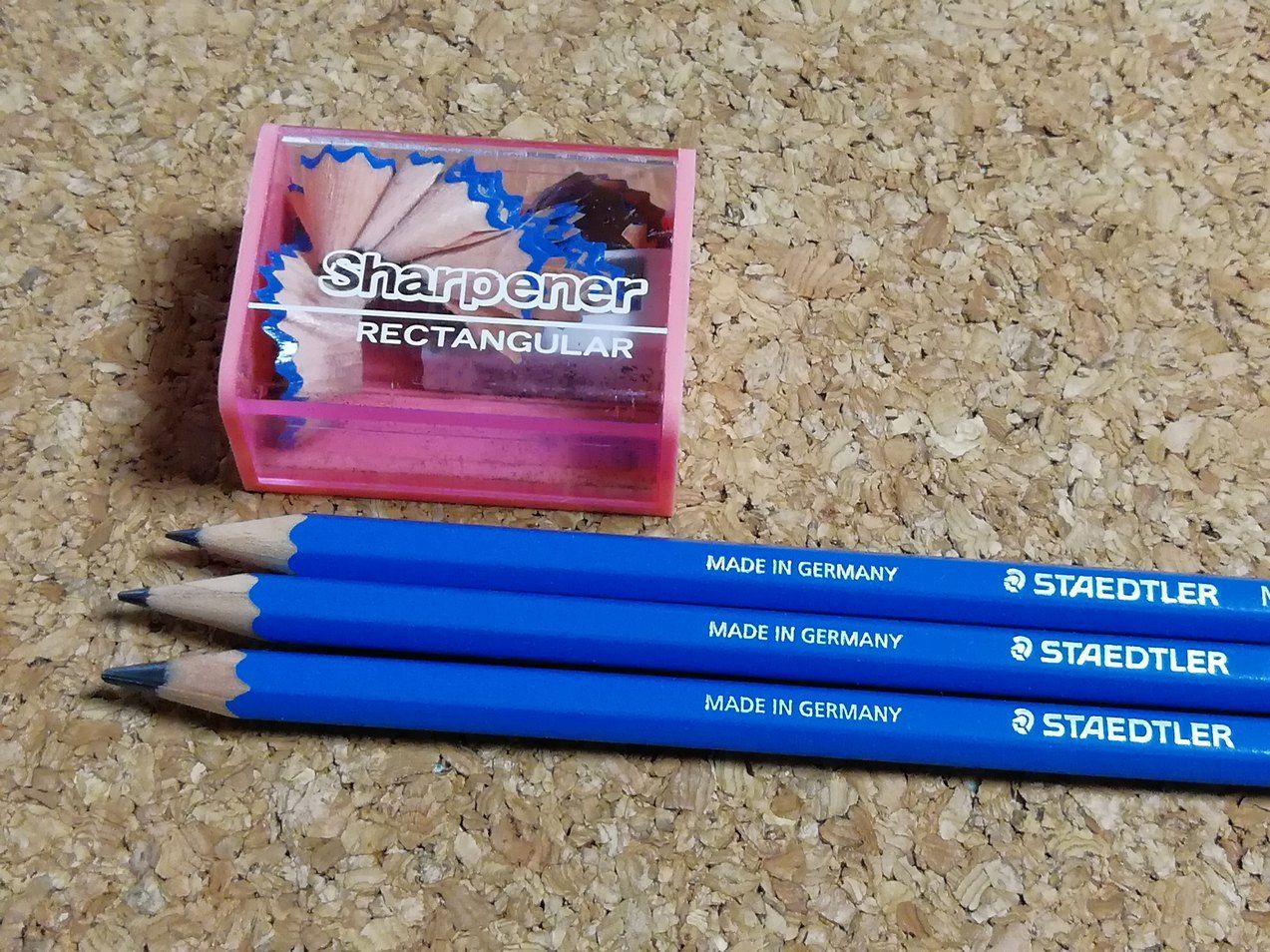鉛筆を削るのも楽しかったです。電動タイプなら早く簡単に削れますが、せっかくなので削っている感触を味わおうと手動式にしました。「削って手入れを学ぶ」には、このやり方のほうがふさわしいと思います。電動式の鉛筆削りの普及によってカッターなどでペン先を直接削ることが少なくなっているので、鉛筆に対する愛着が薄くなっているという面もありそうです。