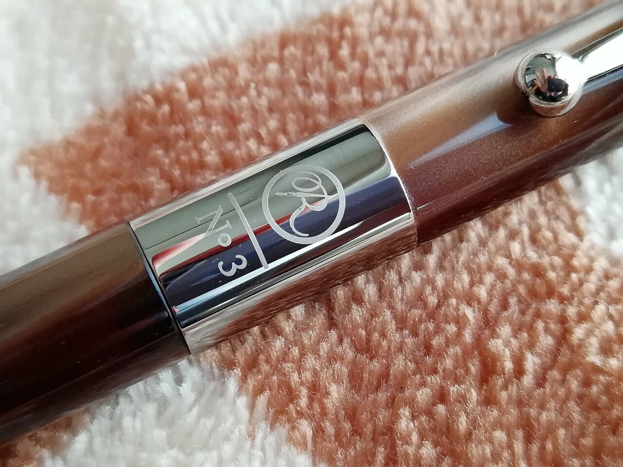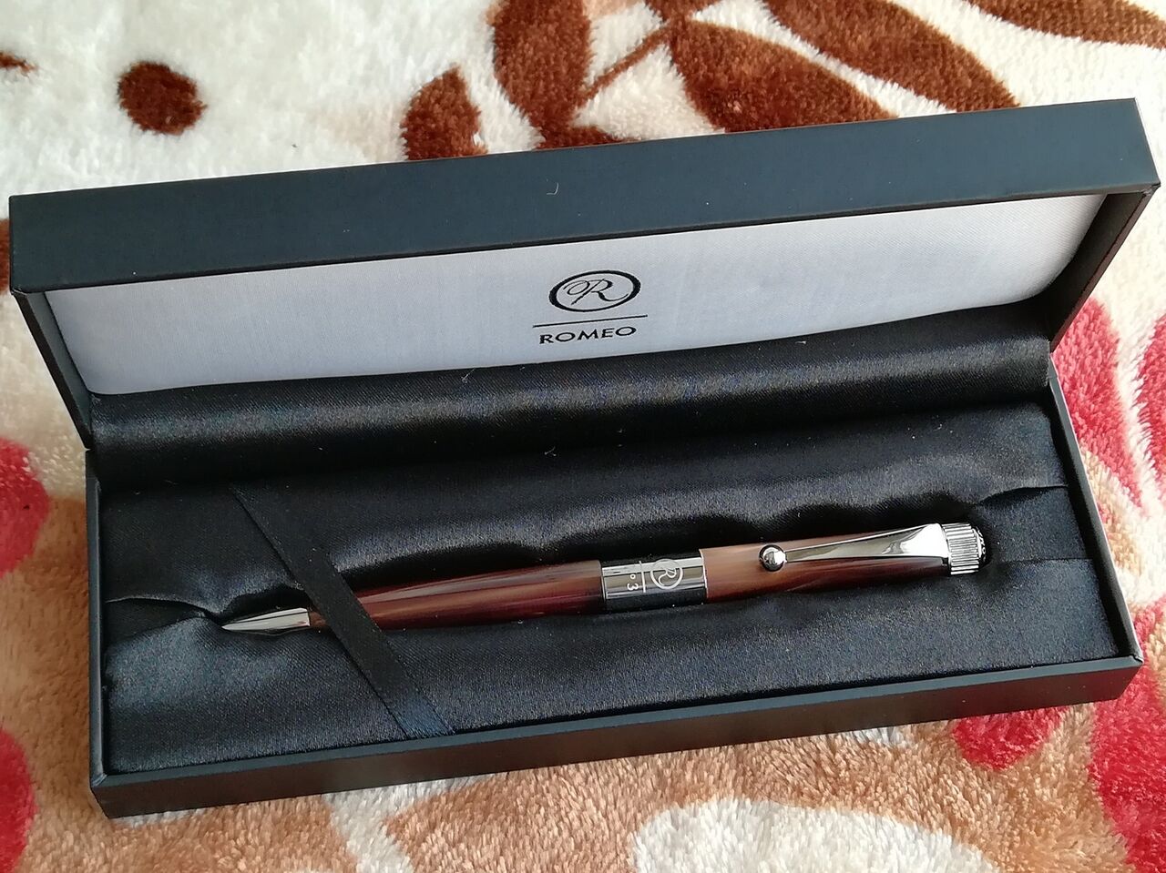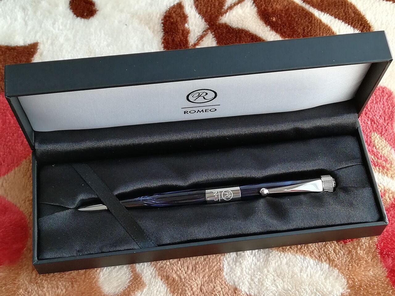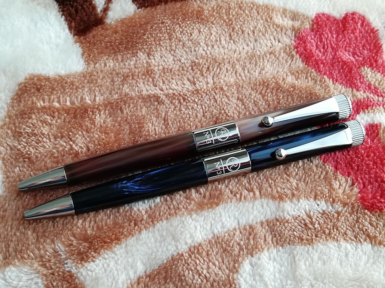 ロメオNo.3を購入しました。マーブル模様をあしらったゴージャスな雰囲気が素敵なボールペンです。イタリアンブルーかブラウンのどちらかにしようと考えていてお店で両方見せてもらいました。いずれも惚れ惚れする美しさです。