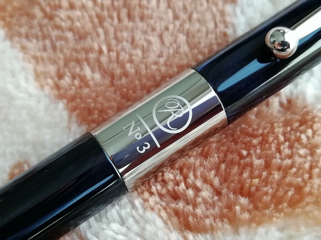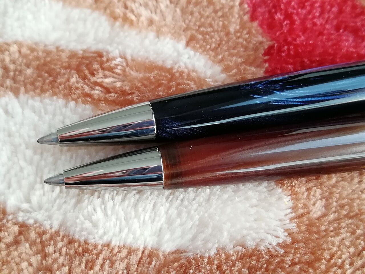 ペン先もすらりとしていてカッコいいです。ブルーの模様は宇宙の銀河系を彷彿させます。見る角度によって変わる模様を眺めて想像を膨らませながら書くという愉しみ方もできそうです。なかなか味わい深いものがあります。
