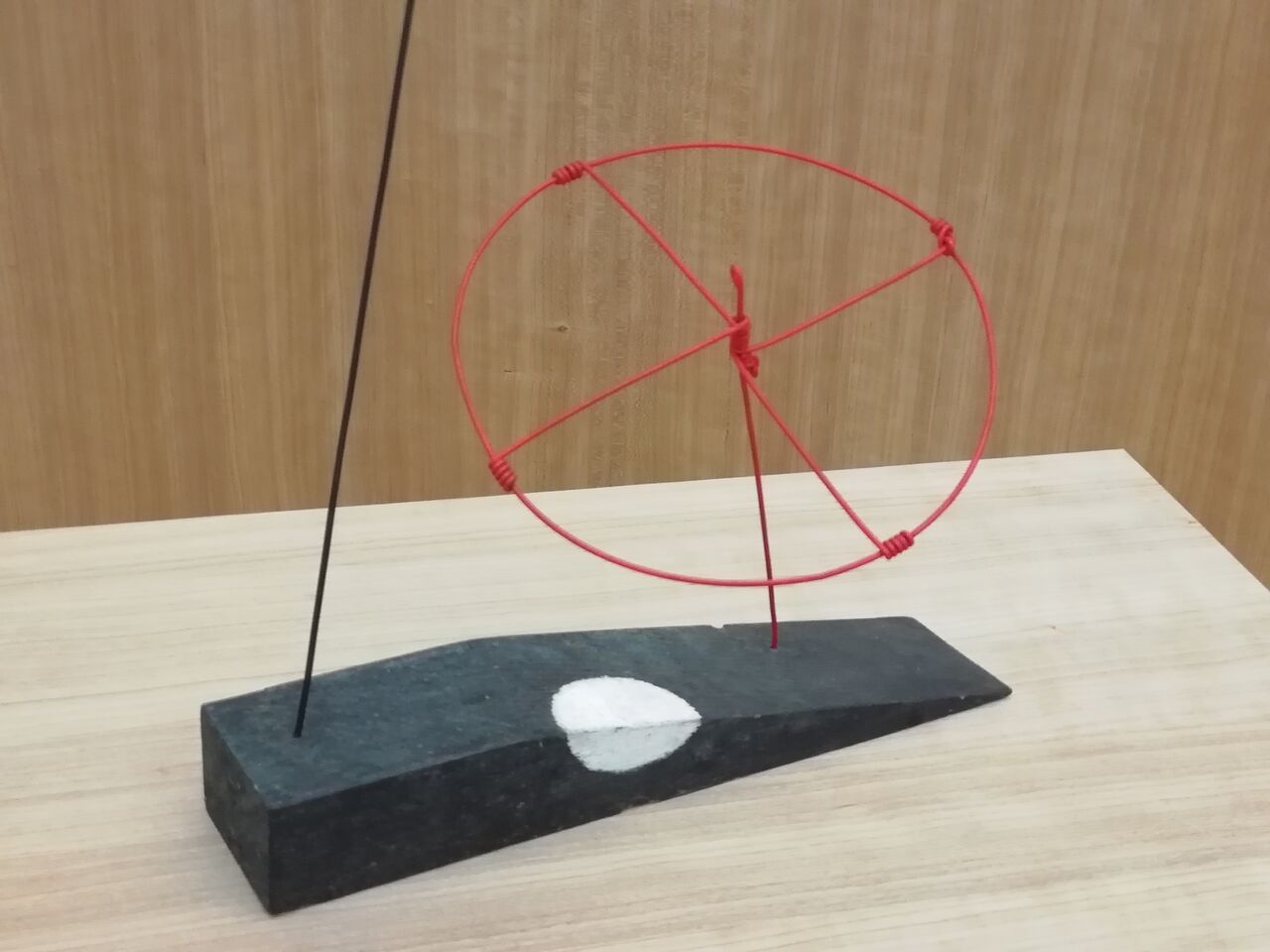 とても繊細に作られた作品です。地球儀のようでもあり、星の軌道を描いた銀河系を表現しているようにも見えます。下の丸い部分は異次元の世界でしょうか。でも一本の線でつながっています。