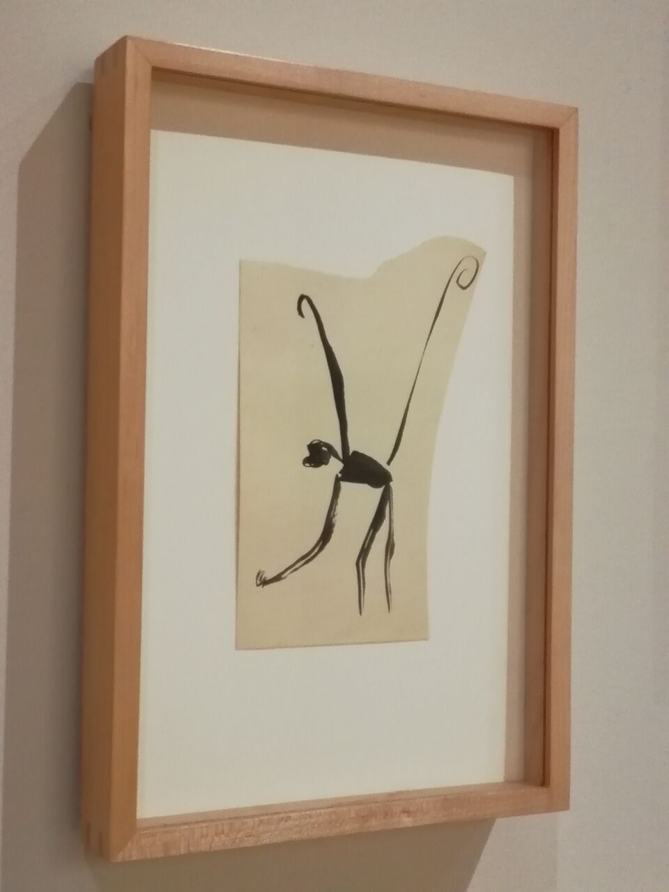 お猿さんのデッサンです。尻尾を描いた線が生き生きとしていて、ぴきぴくと動いている様子が伝わってくるようです。