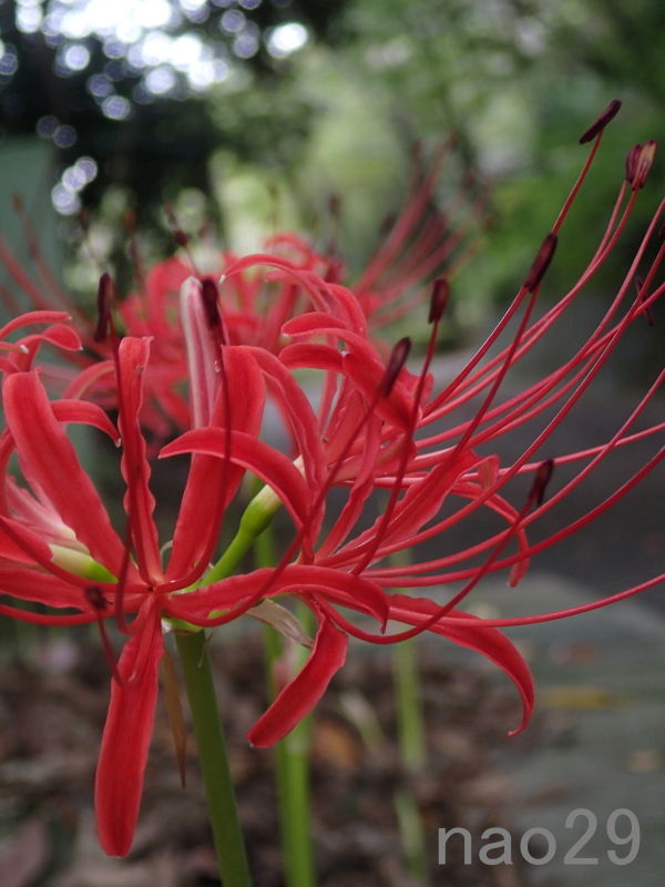 秋を告げる花といえば彼岸花(ひがんばな)、あざやかな赤が目をひきます。