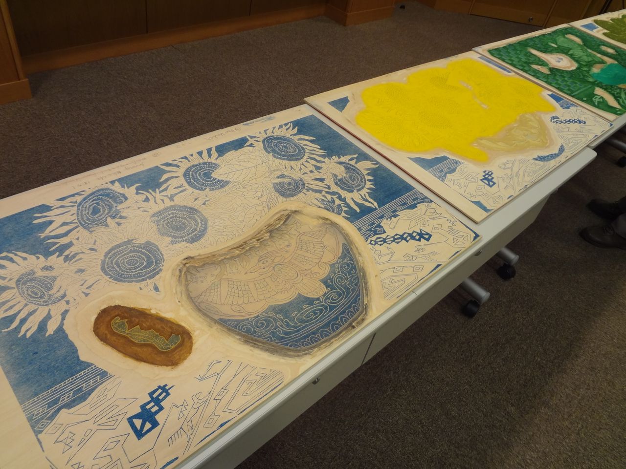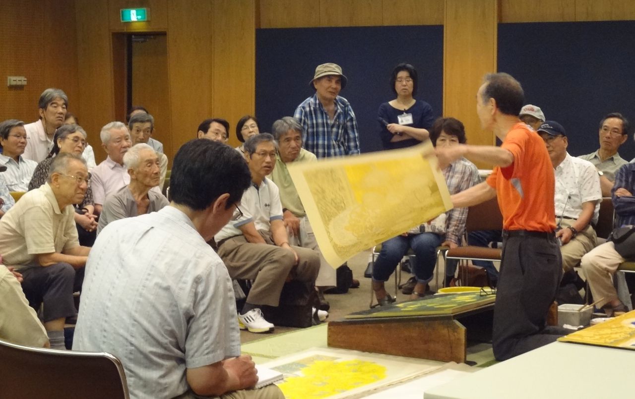 上の写真は、開催中の「夏休みわくわく☆ワークシート2014」で答え合わせをするボランティアのみなさんです。このイベントは夏休み期間中(7/19~8/31)に開催される企画展を見ながら楽しいワークシートに挑戦するものです(8/4~8/9は展示替のためお休み)。ご参加いただいた方には、美術館と版画がもっと好きになるかわいいミニブックをプレゼント♪お家へのおみやげにもなります。