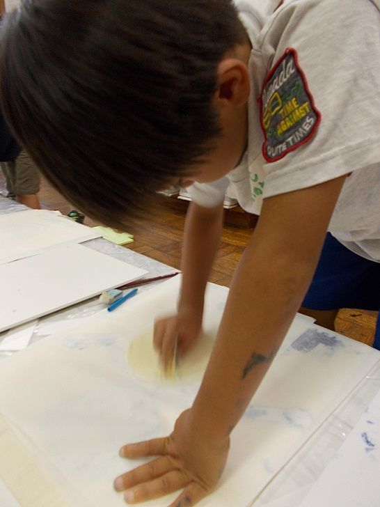 「ばれん」という道具で自分じるしに付けたインクをうつします。