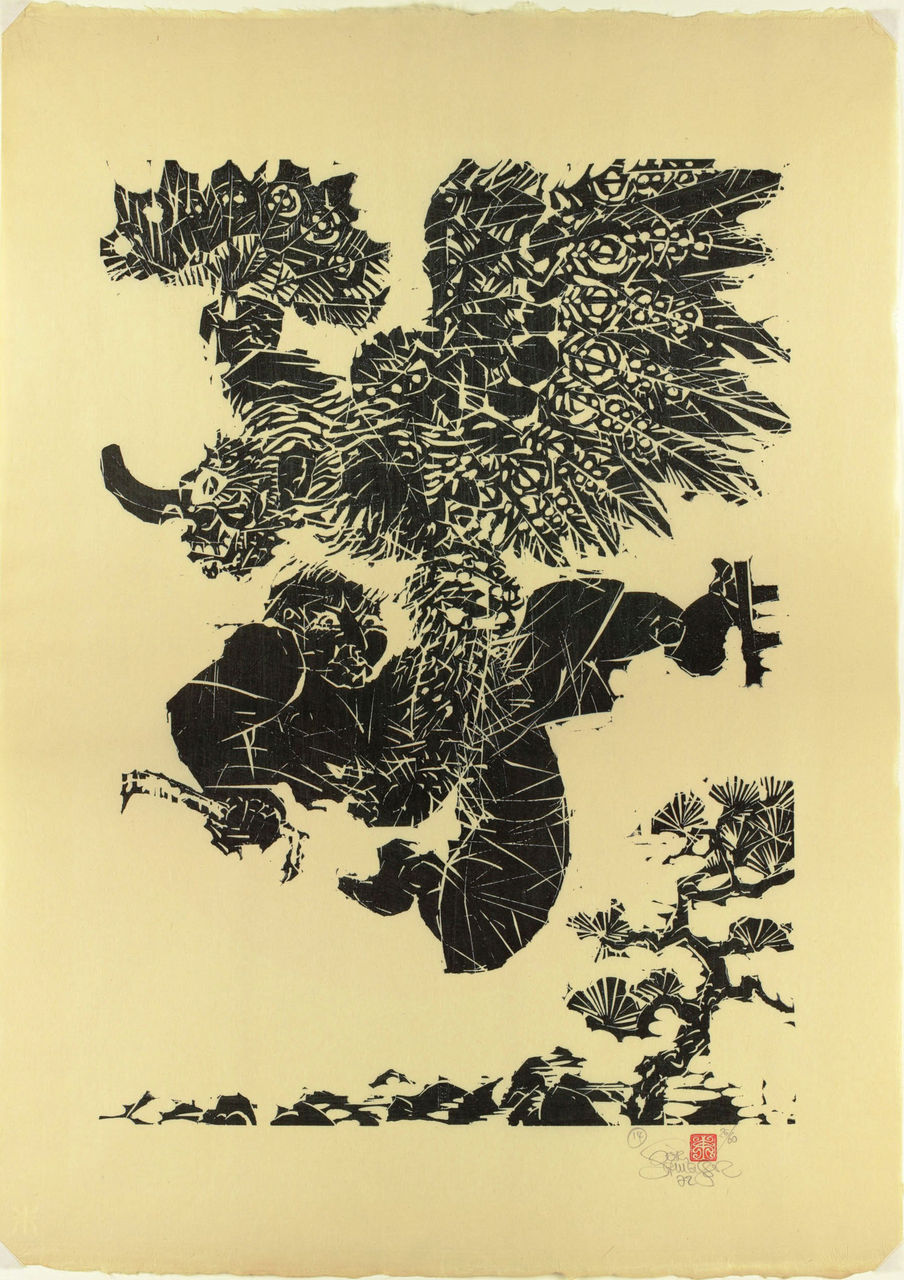 そのドイツから、1960年代に日本にやってきたシュマイサーは、日本の伝統的な道具と和紙を用いて、日本の伝説に取材した作品を制作しています。