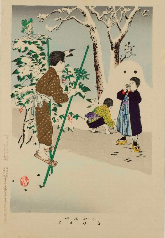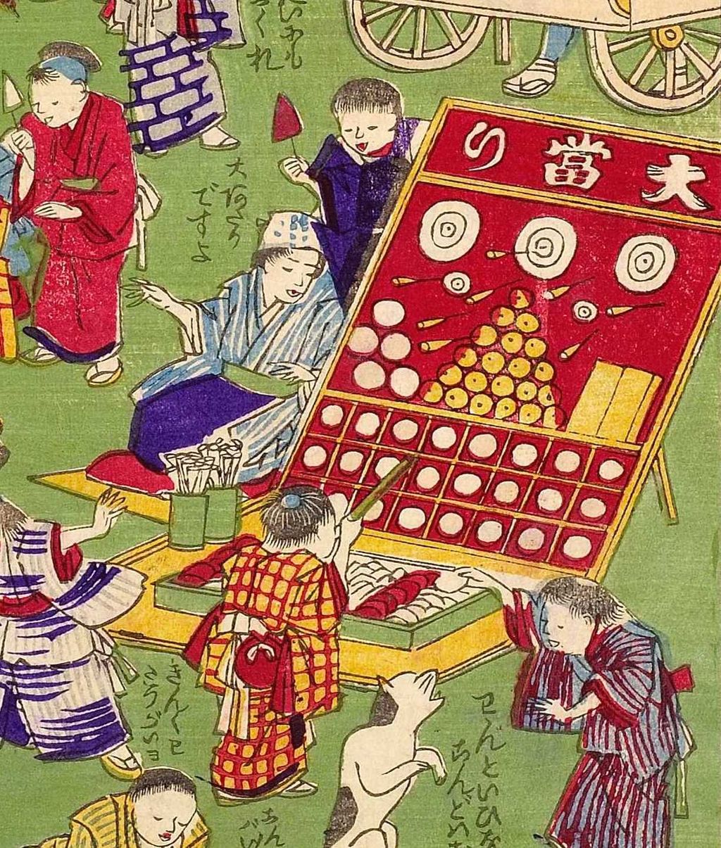 楊洲周延「幼稚の戯れ」(部分)明治28年(1895)、玉川大学教育博物館