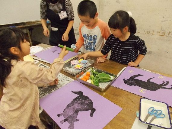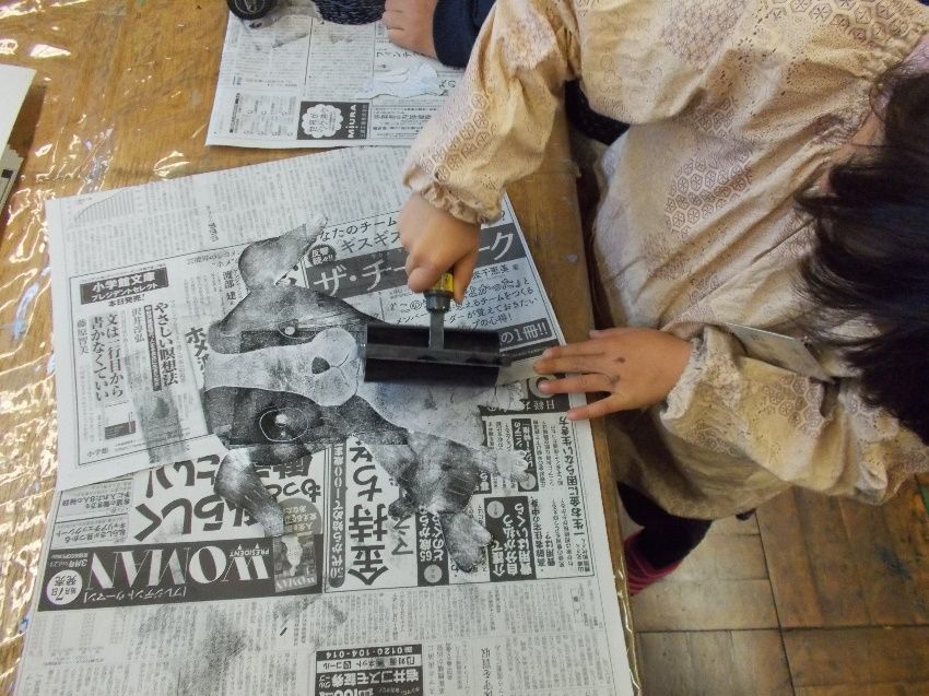 「子ども講座①」(12/16)では、来年の干支「いぬ」にちなみ「犬」の版画を作りました。