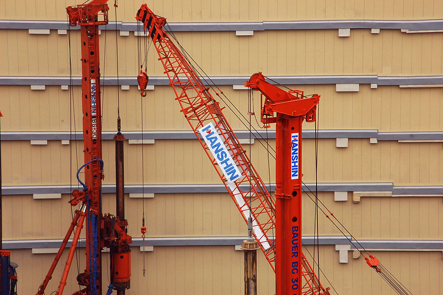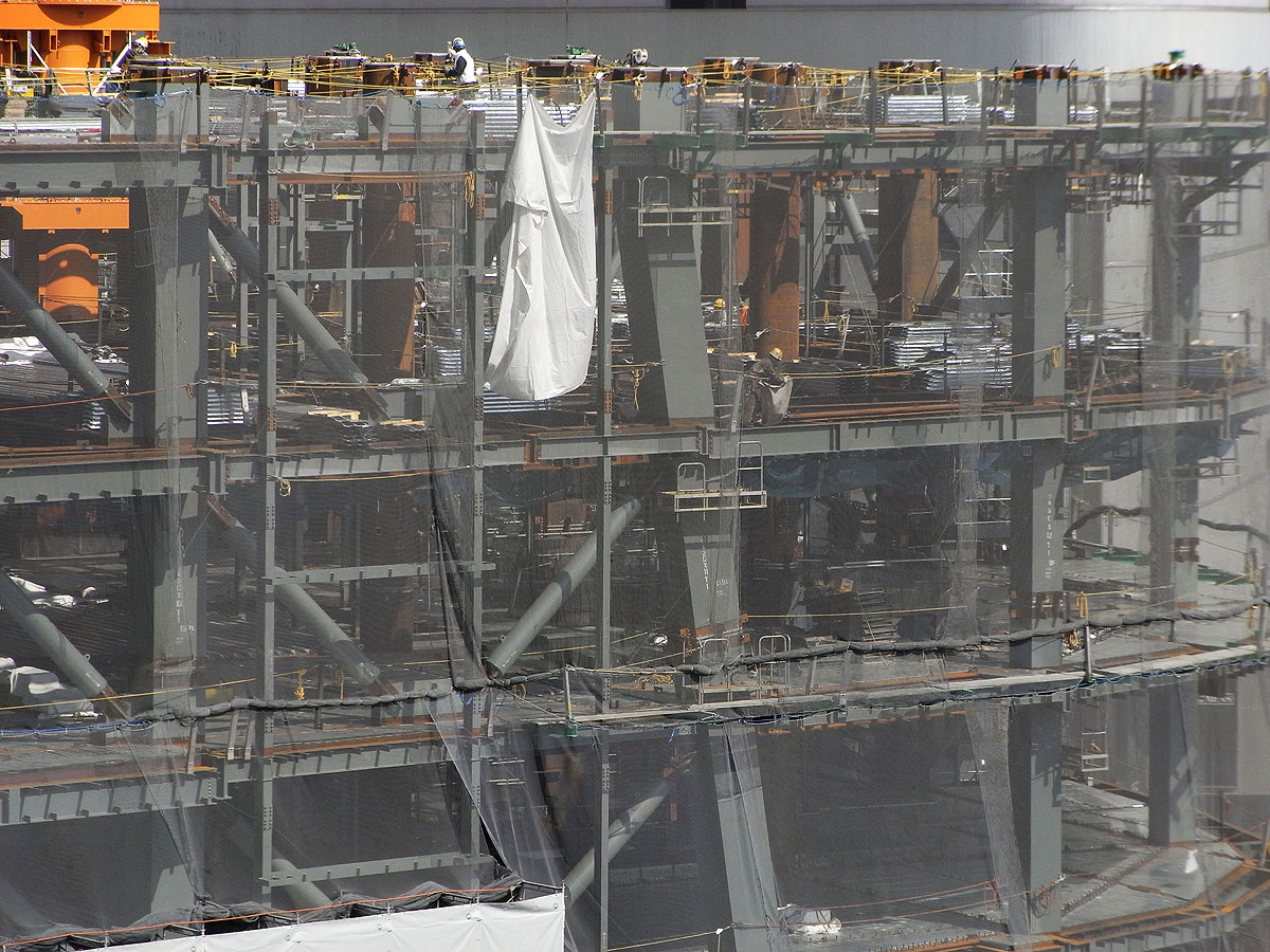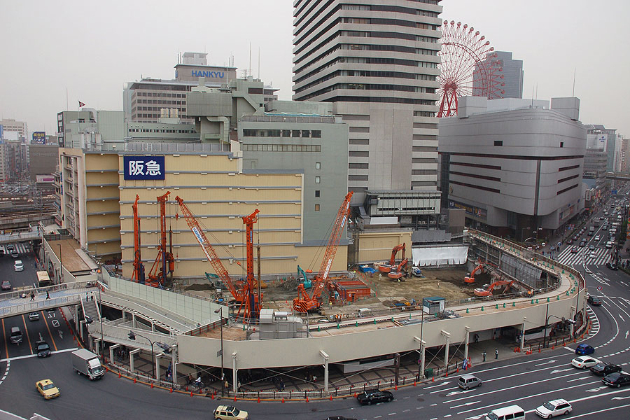 前回3月1日から約一ヶ月。依然地面は泥のままですが、デコボコだった地面はならされ、新たにクレーン型の大きな重機が5台入りました。そのうちの3台はボーリング用の掘削機でしょうか?(私も詳しくはないのでよくはわかりませんが)。ただ、それらの大型重機にはゴリモンな日々「建て替え工事中の梅田阪急ビル」でも指摘されているように「HANSHIN」のロゴが入っていて、どうやら阪神系列の会社(ハンシン建設)のようです。これも事業提携の早速の効果ということなのでしょうか。掘削機の方には「BAUER」という文字が入っていて、イナバウアーのバウアーなのか気になりました。他、写真からはわかりづらいですが、中央部にコンテナ型のタンクが4つ置いてあり、送水機と書かれてました。(m-louis 筆) 続きを読む