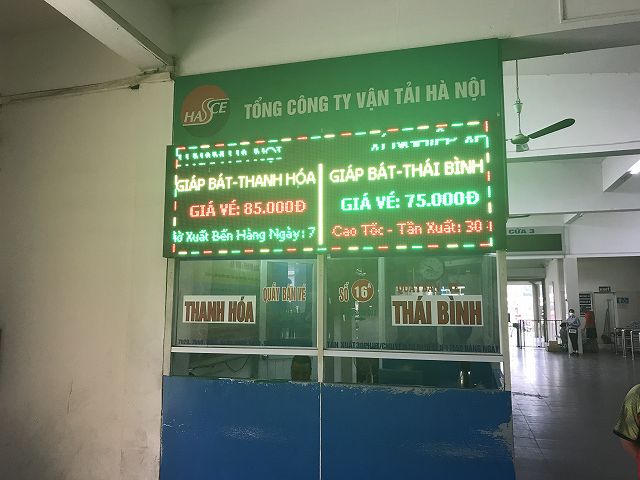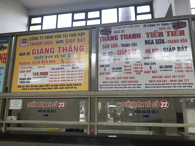 さすがに南方面のバスターミナル。ビーチや世界遺産・胡朝の城塞、ニンビンから、遠方のダナン、ホーチミンまでを網羅していますね! ここを使って、南へ旅行してみようかな( ´∀`) 計画立てます!ではでは。