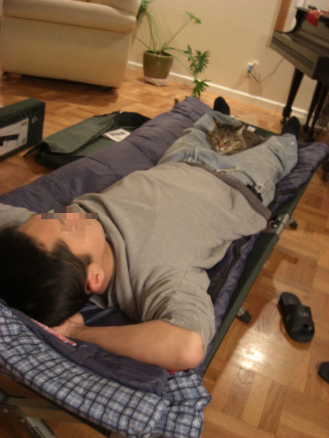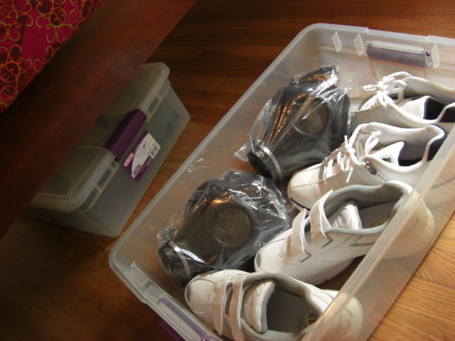 寝ている時に地震が起こったら、起きてすぐに非難できるように靴と、(なぜか)ガスマスクはベッドの下に用意しました。他にも、テントやら寝袋、簡易ベッドを買い揃えました。