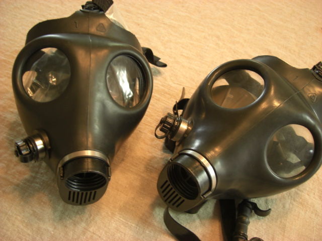 イスラエル製ガス・マスク一体・・・・・・、彼はナニに備えているんだろう・・∑(=゚ω゚=;)。