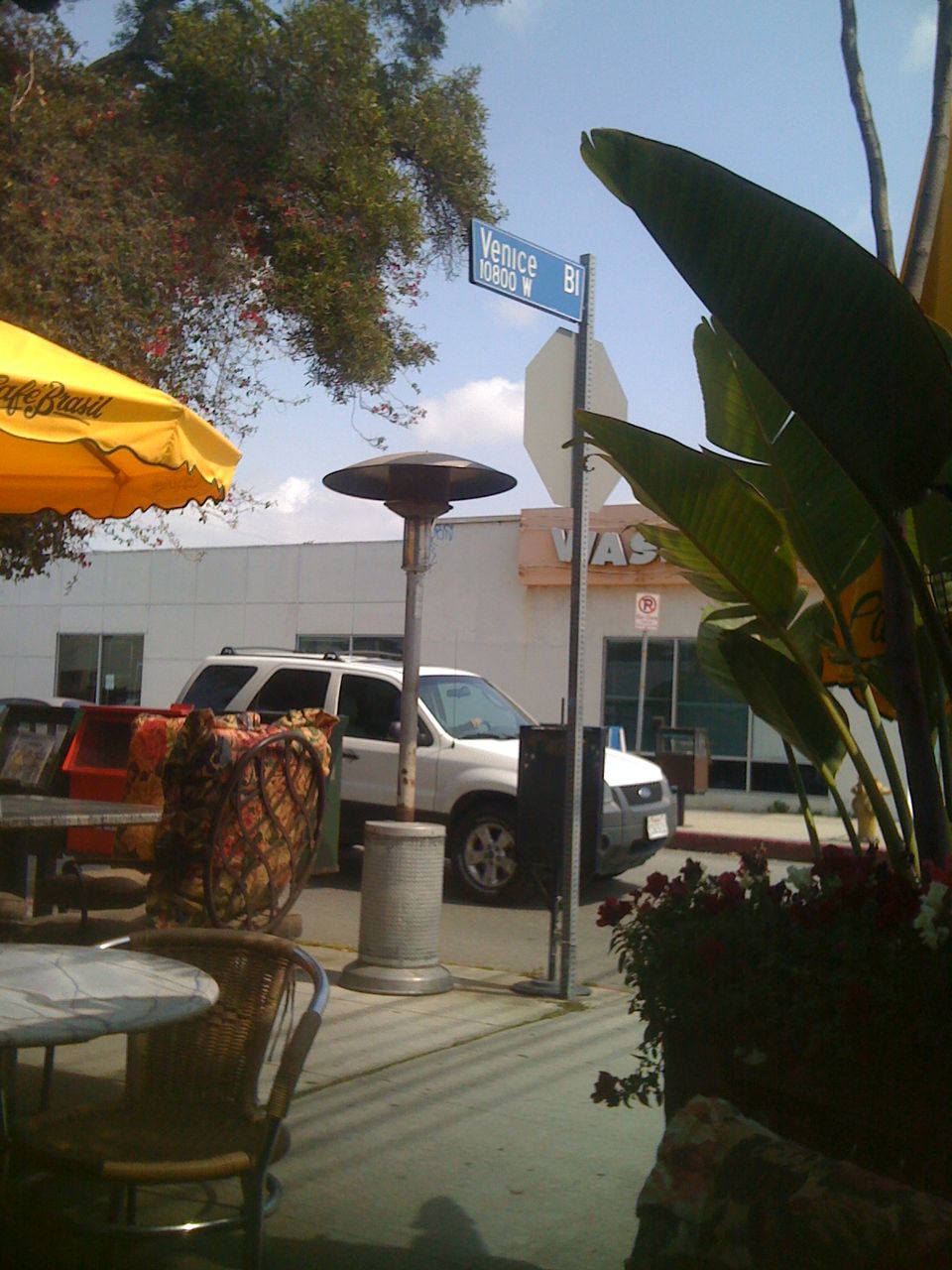 Venice通りという大通りにありますが、木立のすぐそばのテーブルはそんな都会の喧騒を、しばし忘れさせてくれます。