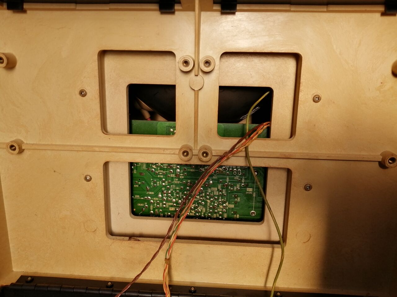 筐体上部は鉄板に代わって樹脂製になっている。CRTもボルトをナットで留めていたのがネジに。