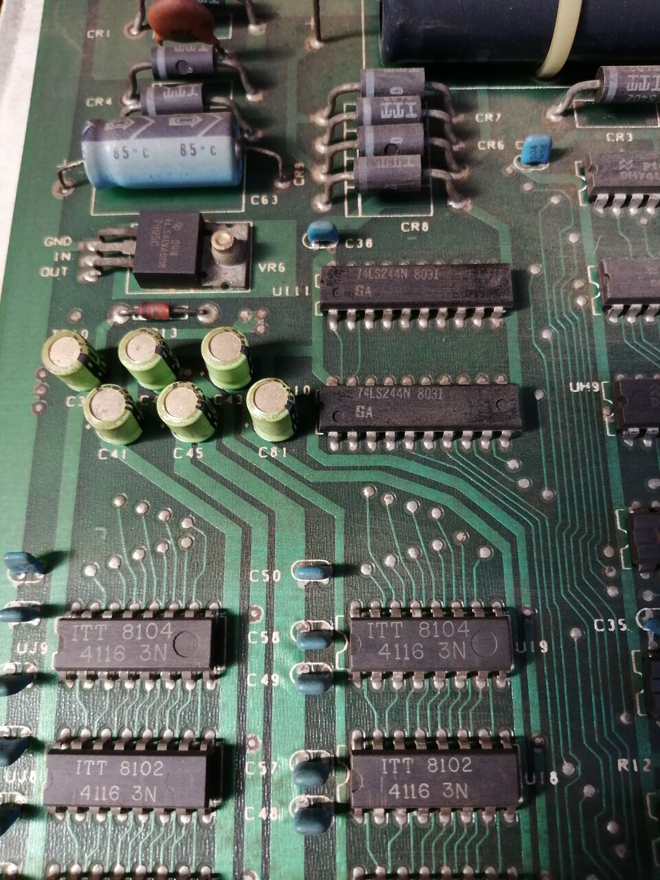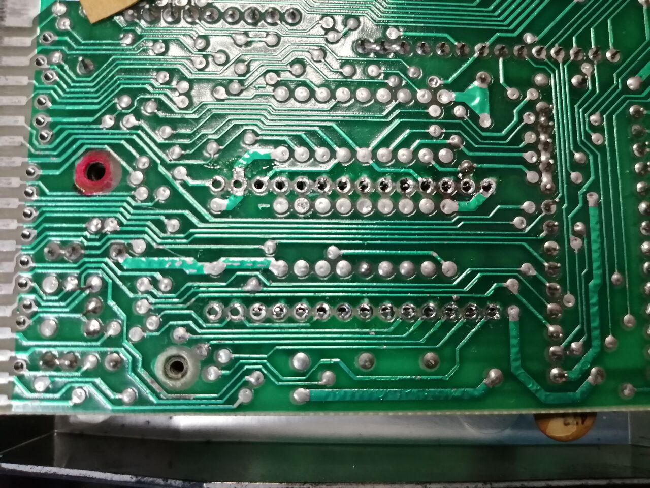 DRAM,PIA,VIA,ROMが直付け。電源のタンタルコンデンサが電解コンデンサになっている。
